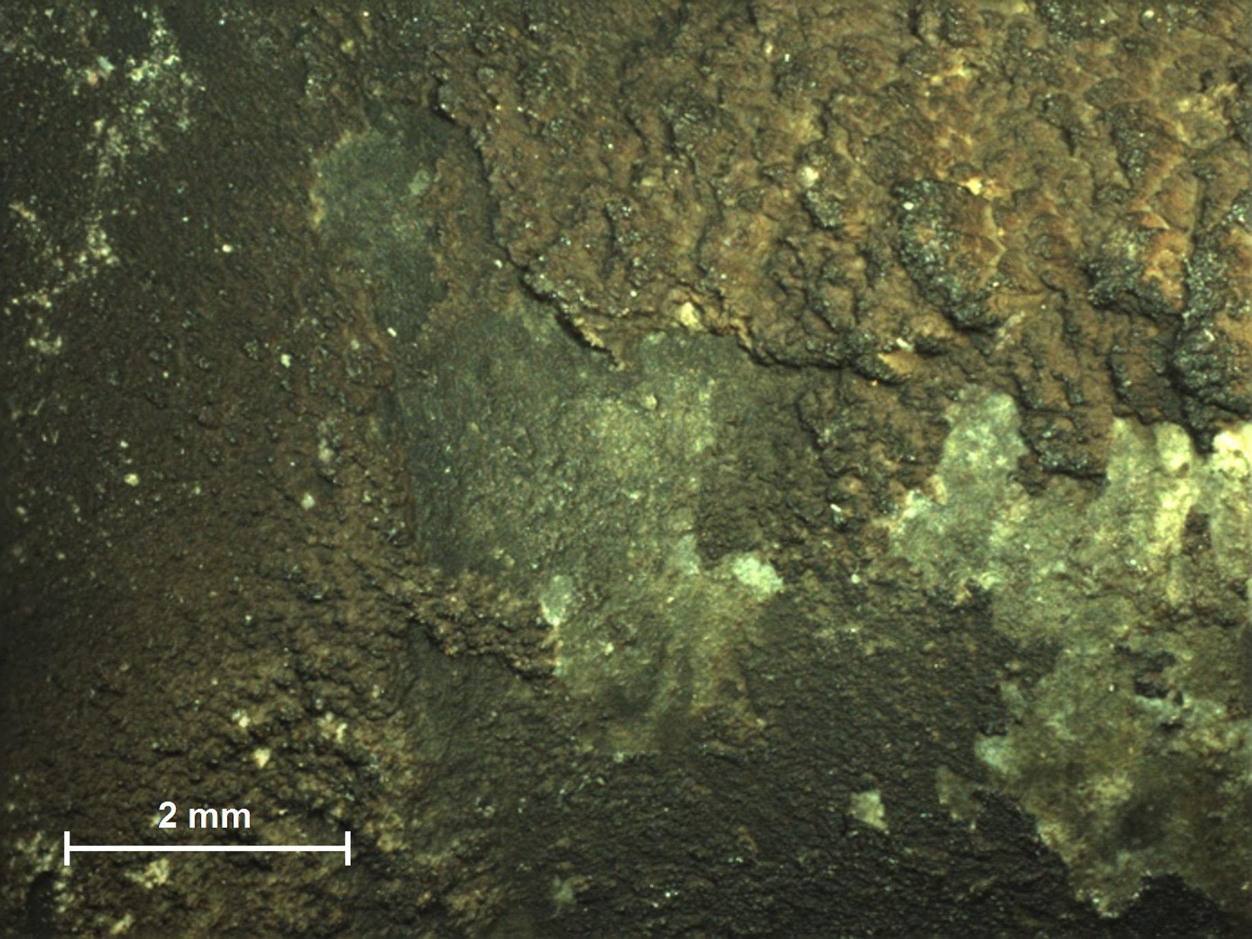 • Residuos de escape en la válvula de salida, iluminación anular segmentada, profundidad de campo ampliada (EDF), aumento: 45x