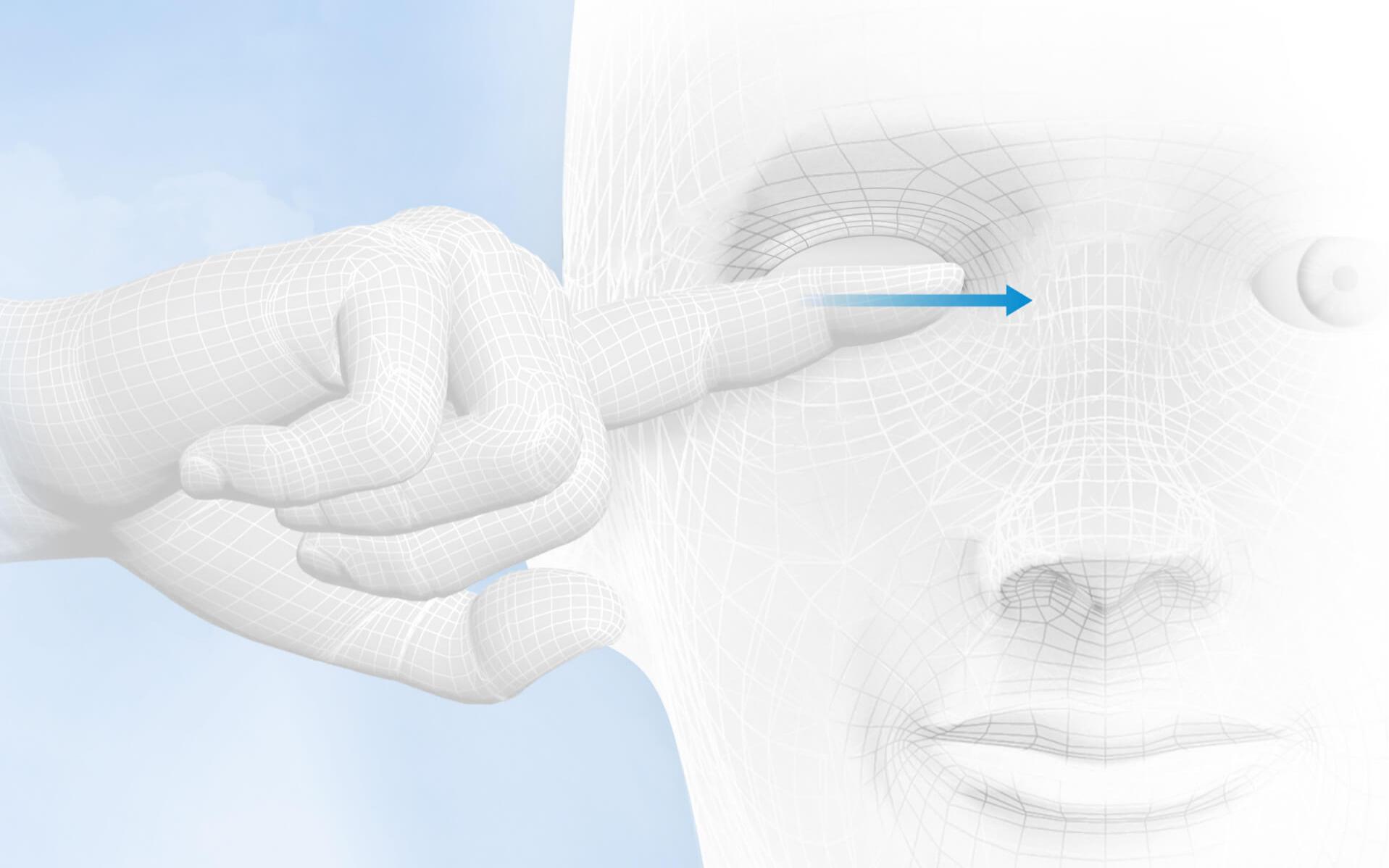 2. Después, es momento del masaje de párpados: movimientos suaves ayudarán a liberar la secreción de los conductos de las glándulas de Meibomio. Cierre los ojos. Con cuidado, acompañe con los dedos el párpado superior de arriba hacia abajo y de abajo hacia arriba, hasta el punto donde los párpados se encuentran. Repítalo varias veces. Por último, masajee los párpados moviéndolos hacia adentro, en dirección a la nariz.